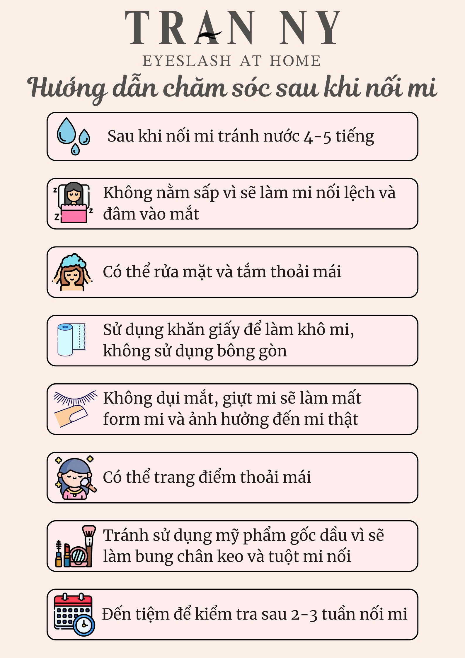 Hướng dẫn cách chăm sóc mi sau khi nối để giúp mi bền hơn, hạn chế rụng, giữ form cong và mềm tự nhiên. Nối mi đẹp là một chuyện, giữ cho nó bền mới khó nha mấy bà. Phần này tui chỉ cách chăm mi sau nối, giúp mi không rụng, không vón keo mà vẫn mềm nhẹ tự nhiên.