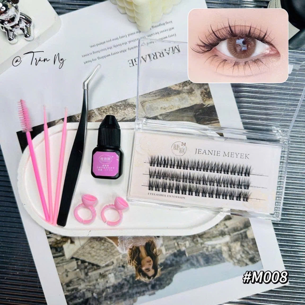 - Combo bao gồm: mi giả, keo nối mi không cay, nhíp nối mi, que đẩy mí, chổi chải mi, nhẫn đựng keo