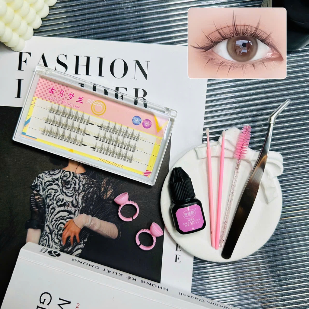 - Combo bao gồm: mi giả, keo nối mi không cay, nhíp nối mi, que đẩy mí, chổi chải mi, nhẫn đựng keo