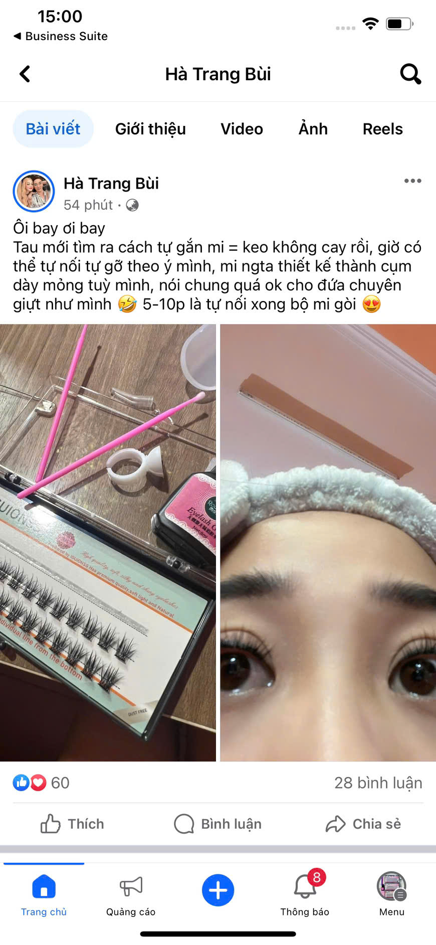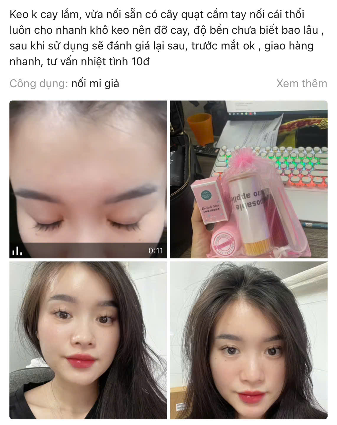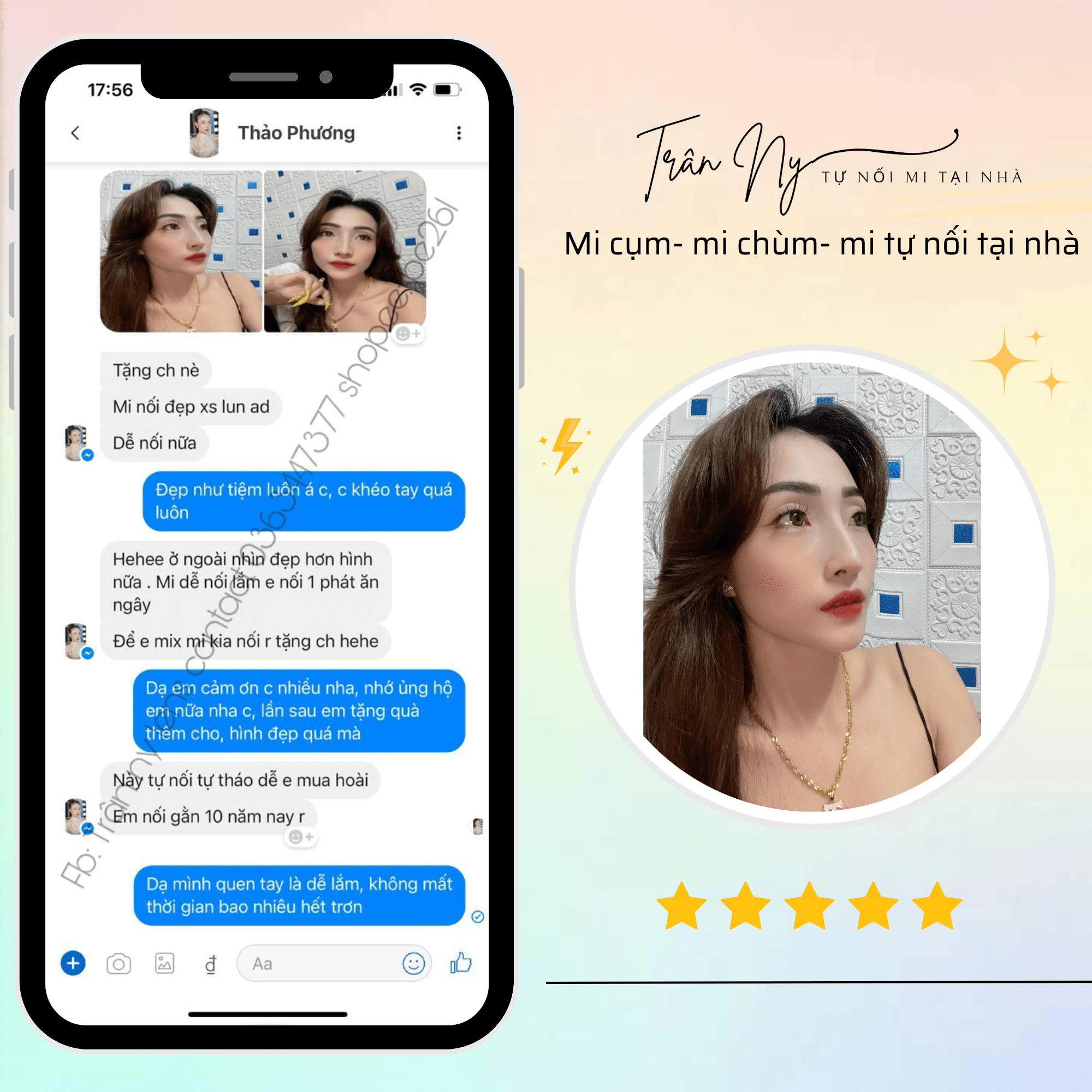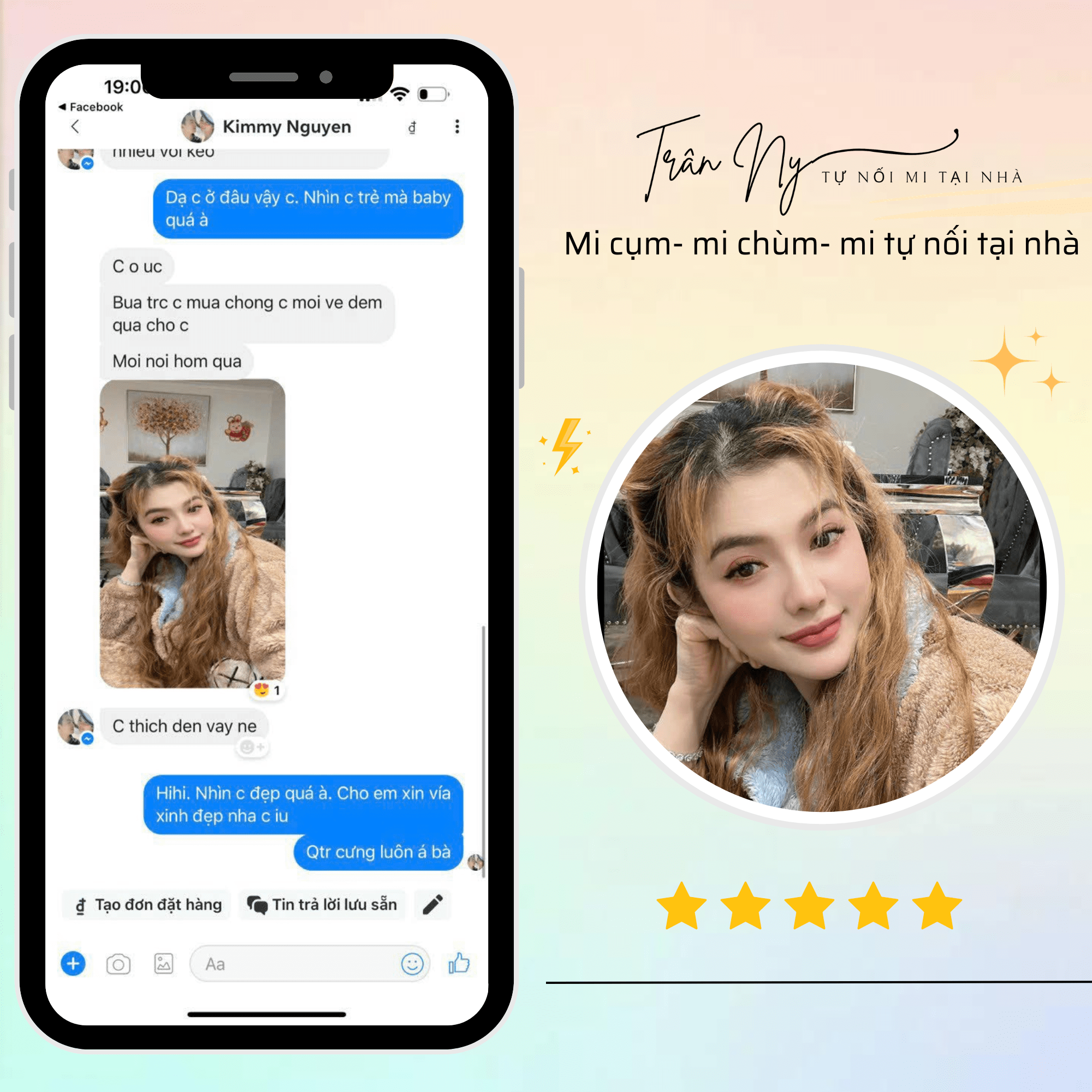 Ảnh & video feedback của khách hàng sử dụng mi tự nối tại nhà. Thể hiện độ dễ dùng, tự nhiên và bền của mi– phù hợp với người mới.