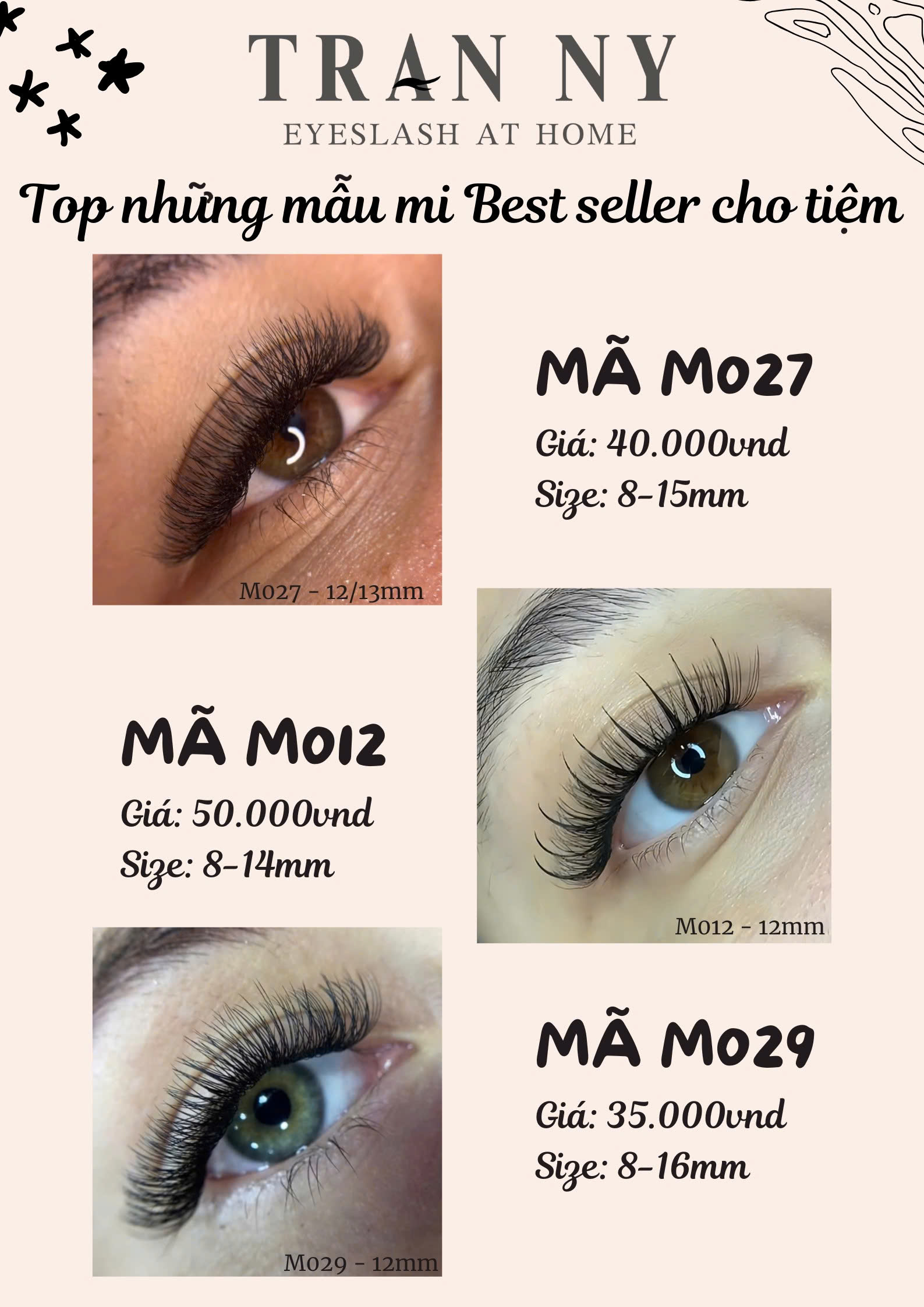 Làm tiệm mà không có mấy mẫu mi chùm bestseller này là thiếu sót luôn đó! Tui tổng hợp lại những mẫu mi cụm và mi mink mà thợ nối mi Âu Mỹ được các tiệm sử dụng nhiều nhất nhờ độ tơi, nhẹ và form mi cực đẹp. Mỗi mẫu đều đã được kiểm chứng về độ bền keo và độ tự nhiên khi lên mắt, giúp mấy bà dễ chọn loại phù hợp cho salon của mình.